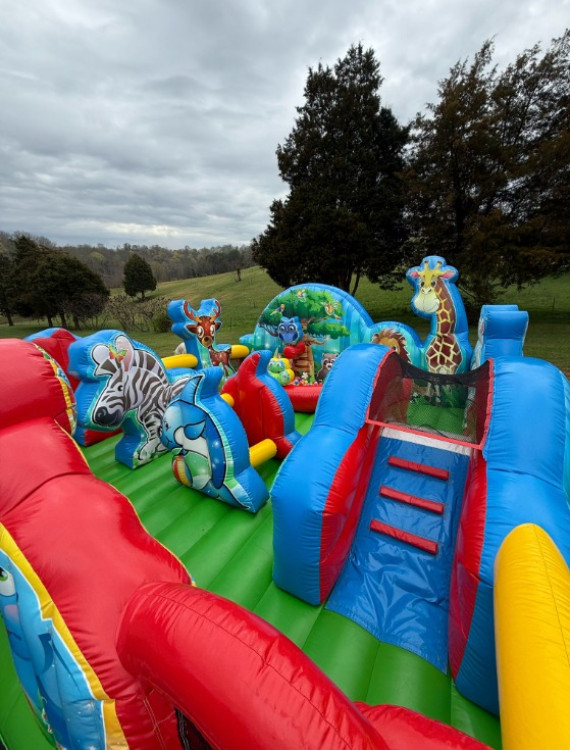 Does your family love the zoo? Our Animal Kingdom Bounce House is perfect for young kids and bound to be a big hit! Covered with brightly-colored images of your children’s beloved animal characters, this inflatable features a large 19x19 jumping area, pop-up obstacles and a built-in toddler slide. Let your kids bring their wild imaginations to life with this fun and interactive Animal Kingdom Bounce House!