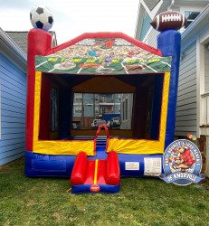 Our Sports Themed Bounce House is a great way to entertain any young sports fan! This inflatable will make any occasion special, including birthday parties, corporate gatherings, church activities and social events. Kids are sure to get a kick out of it - they won't be able to contain their excitement when they see it set up!