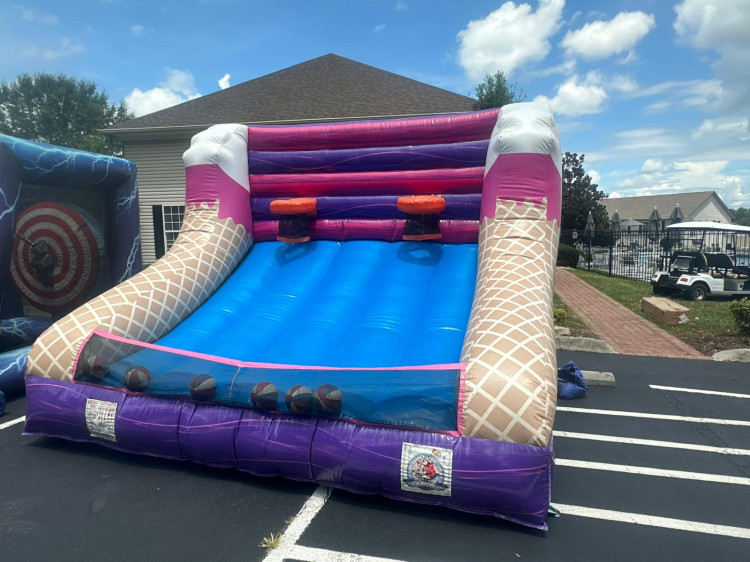 Our colorful ice cream–themed basketball toss game for fast, friendly shootouts. Players take turns sinking mini basketballs into hoops on a sturdy bouncy backdrop covered in sweet graphics. Sets up quickly, works indoors or outdoors, and suits kids, teens, and adults. Ideal for contests, prize stations, and photo-worthy fun.