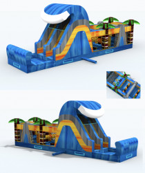 Introducing our exciting new inflatable 40ft tropical island obstacle course! Get ready to embark on a fun-filled adventure as you navigate through palm trees, tunnels, slides, and other exciting challenges. This colorful and vibrant obstacle course will transport you to a tropical paradise right in your own backyard. Perfect for outdoor parties, community events, or just a day of family fun, this inflatable attraction is sure to be a hit with people of all ages. Get ready to bounce, climb, and slide your way through an unforgettable tropical island experience!